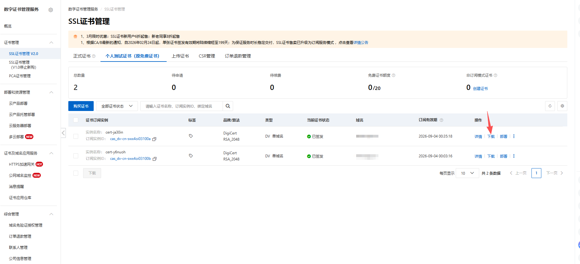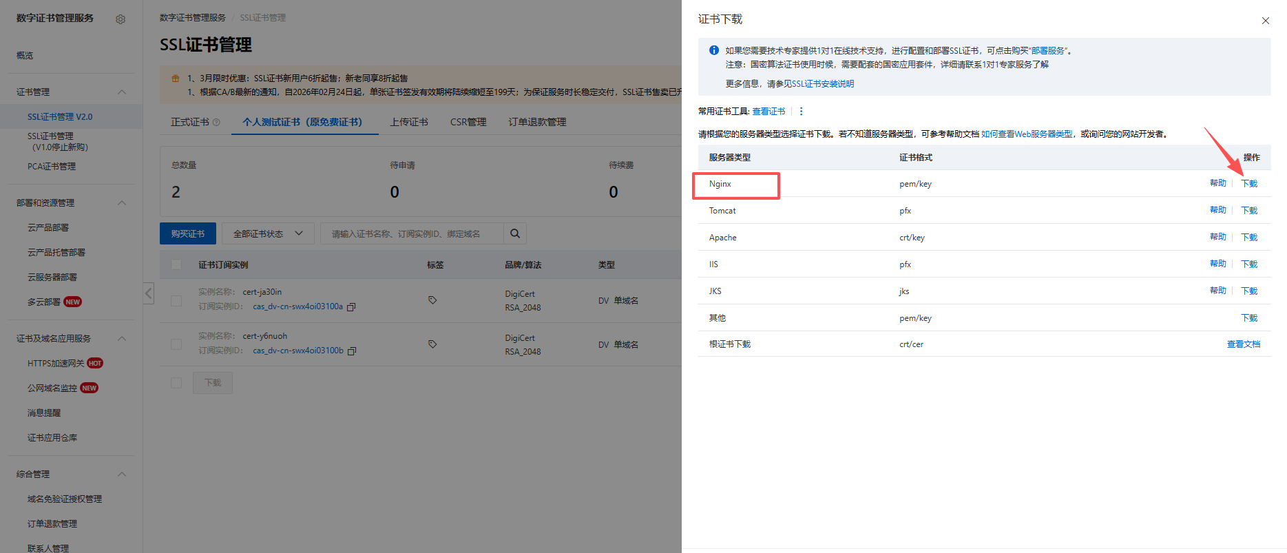 5、证书下载:证书签发后一般请下载nginx—–pem/key这个类型的证书,如下图
